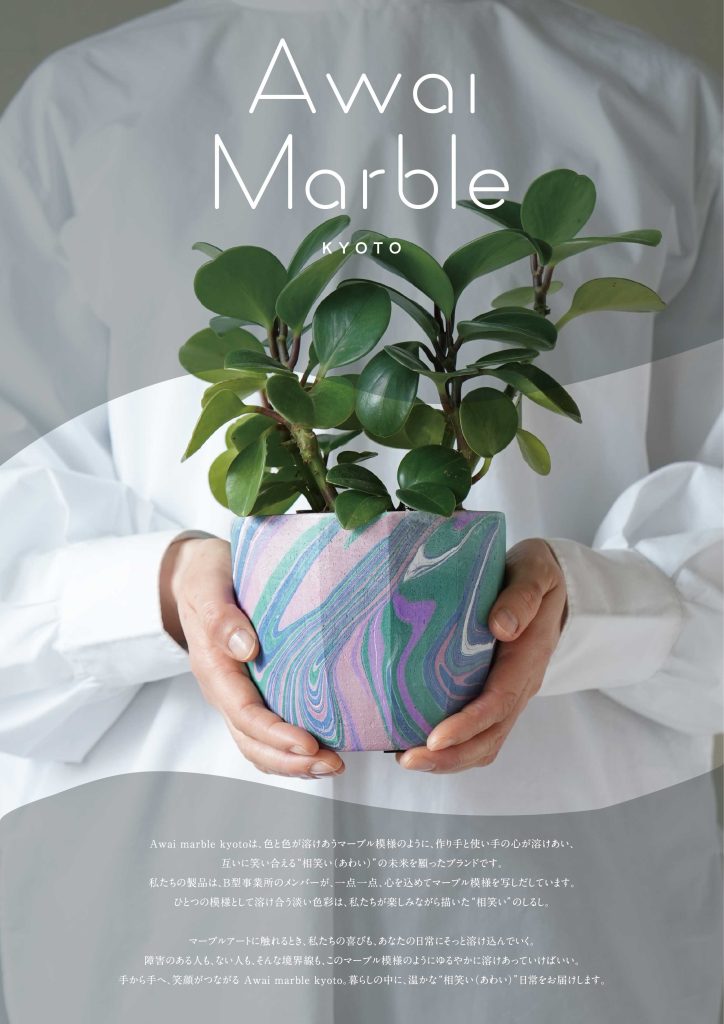 社会福祉法人 成望館の運営する就労継続支援B型施設から依頼を受け、マーブルアートのブランド「Awai Marble KYOTO(アワイ マーブル キョウト)」の商品開発を支援しました。